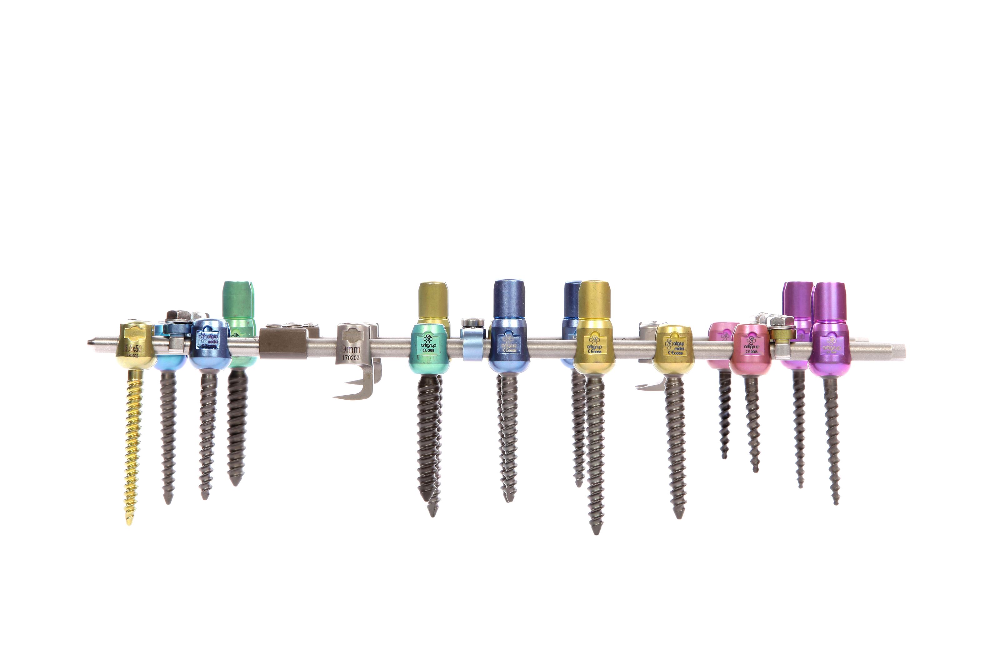 Toplam 60° poliakselitesi sayesinde skolyoz ameliyatlarında oldukça bașarılı bir performans sergilemektedir. Vida ameliyatlarına özel sadece bu sisteme göre tasarlanmıș az yer kaplayan ama çok fonksiyonlu, kullanımı rahat ve hızlı uygulama setine sahiptir.
